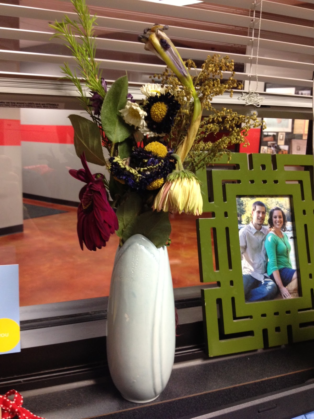 Yall. I really have nothing of interest to talk about today. But as I was sitting here in my office, staring out into space juuuust in case something popped into my brain, I happened to notice my lovely bouquet of flowers on the windowsill in front of me.